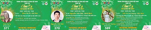 Đến từ Ninh Bình là thí sinh Nguyễn Văn Hải với SBD 370. Và Đinh Thị Tý - SBD 371 đến từ Hà Tĩnh. Mang SBD 389 là thí sinh Trần Thị Lan Hương đến từ Bắc Ninh.